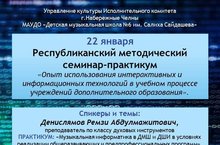 22 января в 10:00 в ДМШ №6 им С. Сайдашева состоится Республиканский методический семинар-практикум "Опыт использоввания интерактивных и информационных технологий в учебном процессе учреждений дополнительного образования".