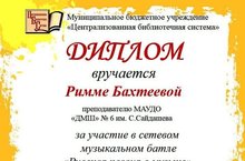 Преподаватель вокально-хоровых дисциплин ДМШ №6 Бахтеева Р.К. приняла участие в творческих мероприятиях по приглашению МБУ "Центральная библиотечная система".