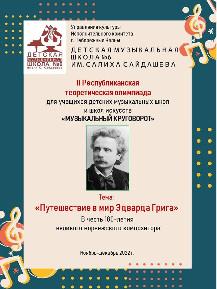 Опубликовано: 06.11.2022Приглашаем принять участие в II Республиканской теоретической олимпиаде для учащихся детских музыкальных школ и школ искусств «Музыкальный круговорот».