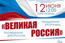 Приглашаем Вас на праздничную программу «Великая Россия» 12 июня 2022 в 12.00 в парке культуры и отдыха «Победа». -