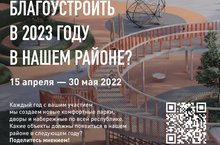 Федеральный проект «Формирование комфортной городской среды» Минстрой России совместно с АНО «Диалог Регионы» принято решение о проведении голосования по отбору общественных пространств, планируемых к благоустройству в 2023 году на единой федеральной платформе, которое состоится с 15 апреля по 30 мая 2022 года. Для Республики Татарстан Минстроем России согласовано проведение рейтингового голосования по выбору общественных пространств, планируемых к благоустройству в 2023 году на Портале государственных и муниципальных услуг Республики Татарстан через сервис «Опросы жителей» и в мобильном приложении «Услуги РТ». -