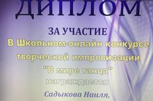 В "Детской хореограической школе" прошел первый дистанционный конкурс творческой импровизации "В мире танца". В конкурсе принимали учащиеся школы. Все участники конкурса были награждены памятными дипломами.