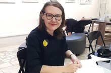 Его посетила обучающаяся Детской художественной школы №1 Герасимова Милана. На мастер - классе она изучила азы ткачества, попробовала свои силы на профессиональном ткацком станке.