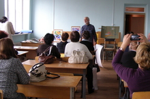 «Олимпиада по истории изобразительного искусства». 26.04.2014. В рамках III Межрегиональной олимпиады по истории изобразительного искусства г. Азнакаево. Мастер – класс провел преподаватель ДХШ №1 член Союза художников РФ и РТ Мухаметдинов Рият Загретдинович по графике «Авторская техника».