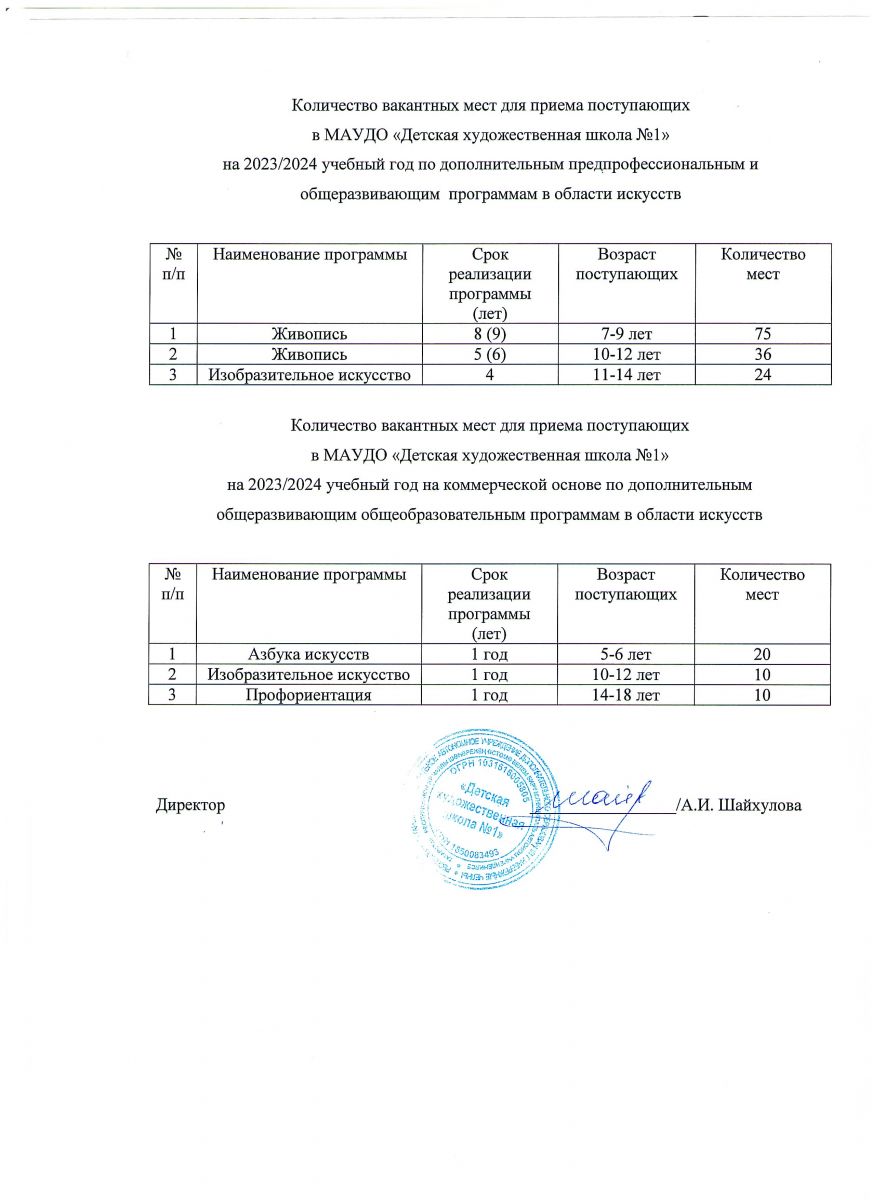 искусства «Изобразительное искусство» (срок обучения 1 год), принимаются дети от 10-