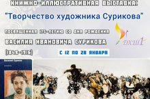 С 12 по 28 января в Детской художественной школе №1 пройдет книжно-иллюстративная выставка «Творчество художника Сурикова», посвященная 175-летию со дня рождения Василия Ивановича Сурикова (1848-1916). 09.01.2023