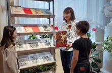 Библиотекарь Аллагулова Фарида Галимзяновна провела устный обзор выставки и рассказала обучающимся о художниках, создававших во время войны рисунки с запечатленными эпизодами военных событий, и плакаты, которые поднимали боевой дух солдат, мобилизовали их силы в борьбе с фашизмом. Юные художники ознакомились с репродукциями «Фронтовые рисунки» Н.Н. Жукова, в библиотеке почитали поэму «Дом у дороги» А.Твардовского, посмотрели книгу-альбом «Память. 1941-1945 гг.» художника Хариса Якупова.