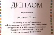 Поздравляем! Воспитанница преподавателя МАУ ДО "ДХШ №1" Сиразиевой С.Ф. награждена дипломом победителя в Республиканском образовательном проекте "Век Татарстана" 15.09.2017