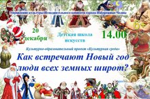 20 декабря (среда) в 14:00 ДШИ приглашает учащихся младших классов на концерт «Как встречают новый год люди всех земных широт?». -