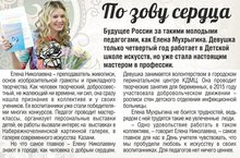 Под таким названием в газете «Вечерние Челны» № 39 (1036) от 5 октября 2016 года опубликовали заметку о преподавателе художественного отделения Мухрыгиной Елене Николаевне.