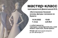 Не пропустите! Мастер–класс преподавателя художественного отделения Давлетшиной Ильзы Хоззятовны на тему: «Изготовление базовой основы фигуры человека для дальнейшего применения на уроках по бумажной пластики».
