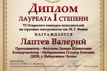 Поздравляем учащегося музыкального отделения нашей школы по классу скрипки Лаптева Валерия с победой на конкурсе.