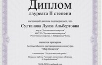 Султанова Луиза Альбертовна стала Лауреатом II степени Всероссийского дистанционного конкурса "Мир педагога" -