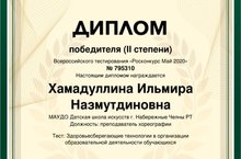 Преподаватель хореографического отделения нашей школы Хамадуллина Ильмира Назмутдиновна приняла участие во Всероссийском онлайн тестировании педагогов по системе ФГОС.
