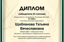 Преподаватель художественного отделения Щебланова Татьяна Вячеславовна приняла участие во Всероссийском онлайн тестировании педагогов по системе ФГОС.