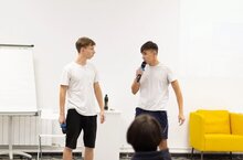 Студенты Технического колледжа из группы ТМА-9-1 Константинов Глеб, Шамсутдинов Булат и Гайнуллин Айрат создали команду и приняли участие в занятиях Школы КВН. -
