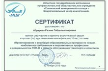 30 ноября в г.Ульяновск заместитель директора по учебно-производственной работе Абрарова Разина Габдельяппаровна, приняла участие в проектно - аналитической сессии и прошла курс повышения квалификации (16час.) по теме «Проектирование и апробация образовательных программ по новым, наиболее востребованным и перспективным профессиям и специальностям ТОП-50 в области обслуживания транспорта и логистики» (в рамках деловой программы V регионального чемпионата «Молодые профессионалы» (WorldSkills RUSSIA) в Ульяновской области)