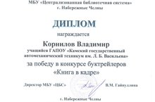 Клуб «Мои Челны». Диплом победителя в конкурсе буктрейлеров «Книга в кадре» 16.01.2017