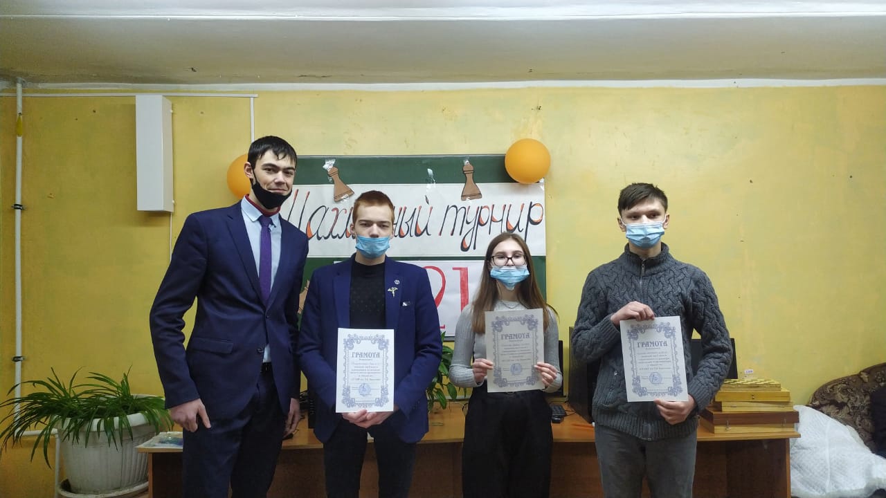 Администрация техникума выражает благодарность за организацию и проведение мероприятия заведующей общежитием – Билаловой Нафисе Мидхатовне, воспитателю Абдулиной Сайме Мухаметгалеевне, судье, обладателю первого разряда по шахматам, студенту группы 139 К - Кочкину Алексею - и секретарю Кузнецовой Наталье - студентке группы 430 К.