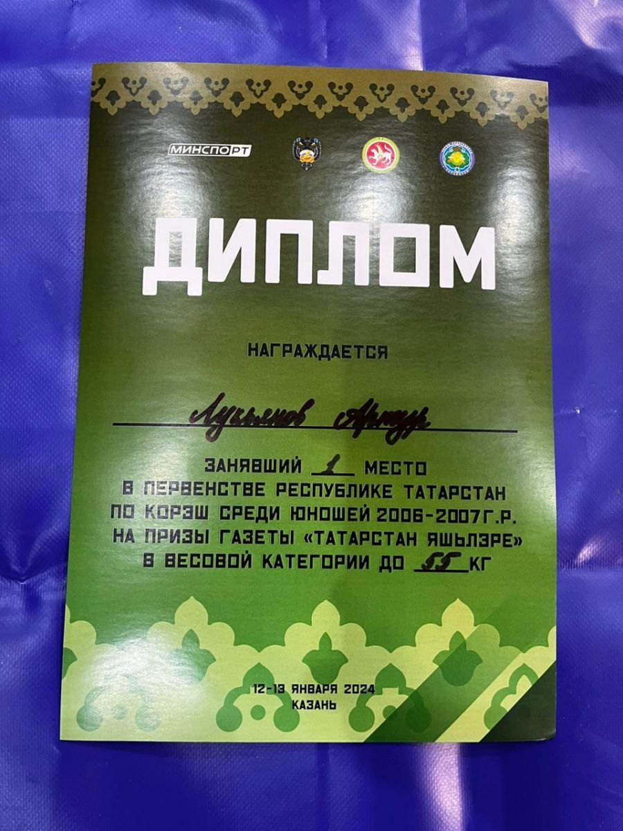 Опубликовано: 16.01.2024С радостью сообщаем, что наш талантливый спортсмен Лукьянов Артур занял 1 место на Первенстве Республики Татарстан по корэш среди юношей 2006-2007 г.р. Весовая категория до 55 кг.