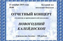 Приглашаем всех желающих на отчетный концерт студентов и преподавателей колледжа искусств, который состоится 23 декабря в 18.00 в большом зале колледжа