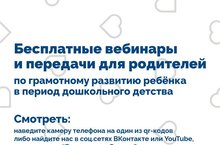 ВОО «Воспитатели России» совместно с лучшими экспертами по дошкольному образованию – руководителями Инновационных площадок «Воспитатели России» и при поддержке Фонда президентских грантов подготовили серию вебинаров и передач для родителей по грамотному развитию ребёнка в период дошкольного детства. Приглашаем вас, уважаемые родители, ознакомиться с содержанием вебинаров и передач.