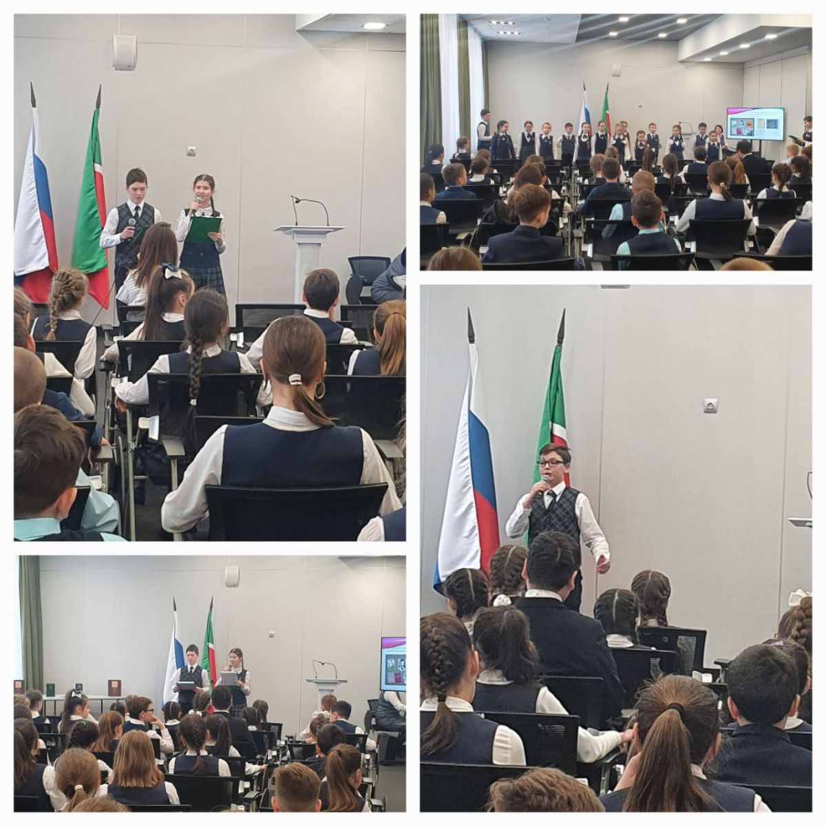 Опубликовано: 15.02.202215.02.2022г. в гимназии был проведён творческий вечер, посвящённый жизни и творчеству М.Джалиля. В ходе мероприятия учащиеся гимназии исполнили произведения творчества писателя, узнали о ярких и трагических событиях из биографии М.Джалиля.