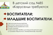 Приглашаем на работу в дружный коллектив детского сада №85 "Карусель" 24.04.2023