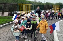 5 мая в детском саду №85 "Карусель" прошла акция «Бессмертный полк». Воспитанники сада совместно с родителями подготовили портреты своих родных – участников ВОВ, изготовили транспаранты. Остальные дети принесли различные атрибуты: флажки, открытки.