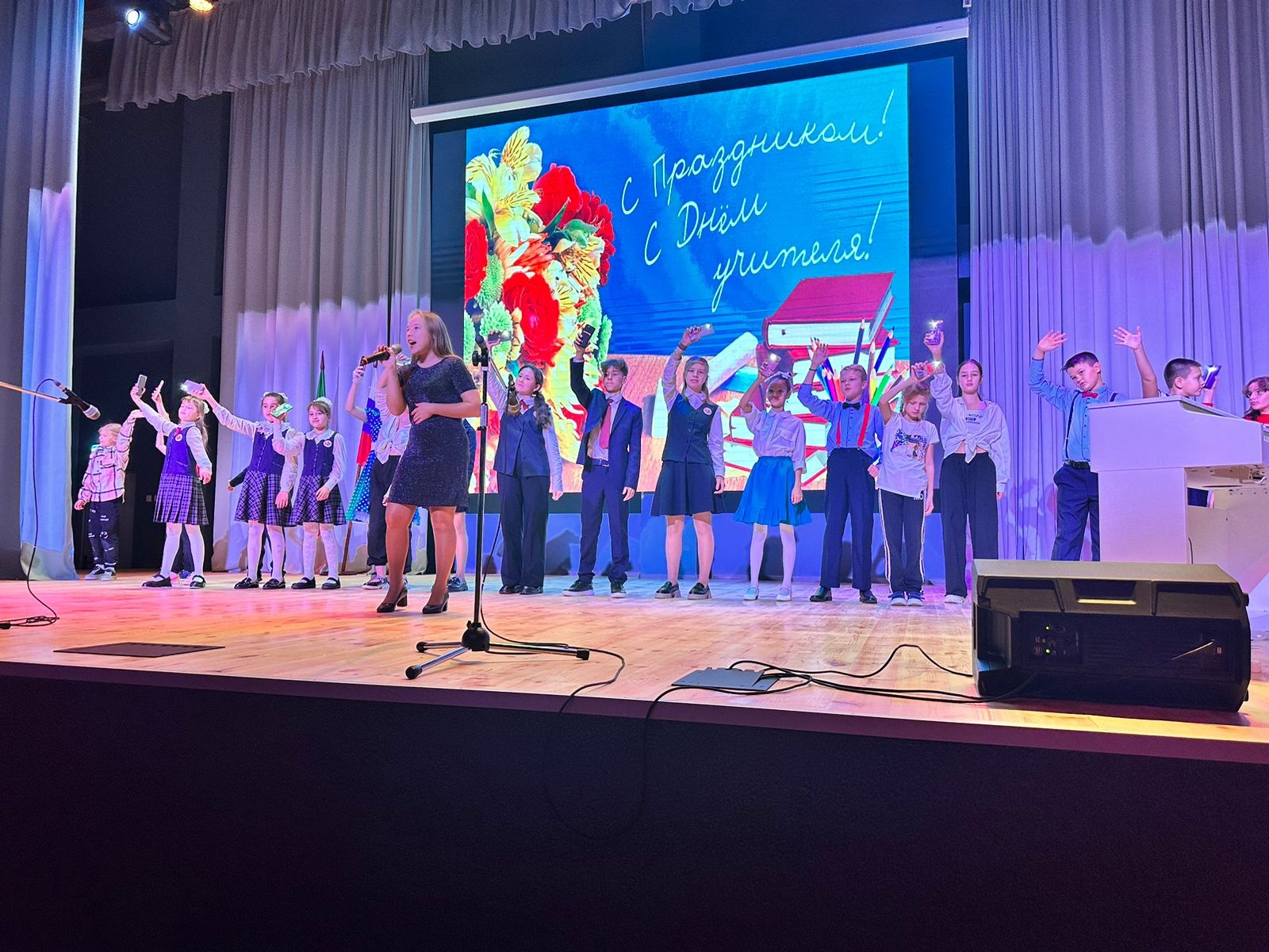 Творческий коллектив Центра образования № 16 подарили праздничный концерт своим учителям. Дети выступили со своими танцами, песнями, стихами. А зажигательные ведущие поддерживали праздничное настроение на сцене.