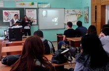 06.05.5015г. в 15.00 прошло мероприятие посвященное к 70-летию Победы " Песни ВОВ". Учащиеся познакомились с авторами песен войны, прослушали их. Мероприятие организовала учитель истории Хангараева Юлдуз Наилевна.