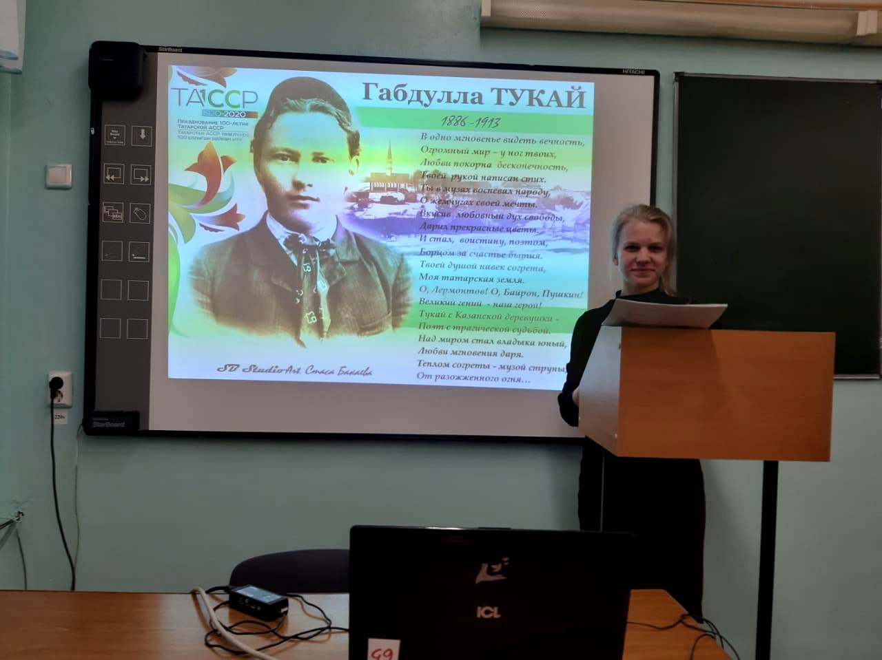 Сегодня в 12Б классе прошёл классный час на тему «Великое чудо, имя которому Тукай». В жизни великому поэту татарского народа было отмерено лишь 27 лет. Он прошел короткий, но полный творческого горения путь. Им созданы сотни стихотворений, 9 поэм, десятки публицистических статей. Габдулла Тукай много писал для детей. На классном часе ученики узнали о тяжелом детстве поэта. С большим вниманием слушали и рассказывали стихи, объясняя их смысл и значение, дали краткую характеристику героев. Классный час завершился исполнением песни на слова поэта «И, туган тел, и, матур тел!», ставшего гимном татарского народа.