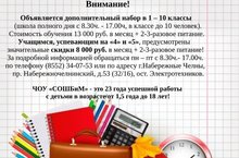 Внимание объявляется дополнительный набор в 1-11 классы 16.04.2018
