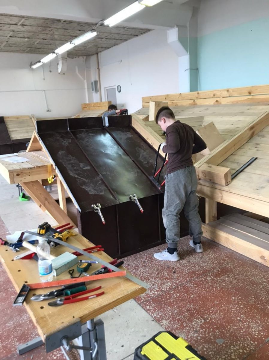 На площадках колледжа соревнуются обучающиеся школ № 54, 40, 24, 22, 37, 29, 30, 5, 53 по 2 компетенциям - «Столярное дело» и «Кровельные работы по металлу».