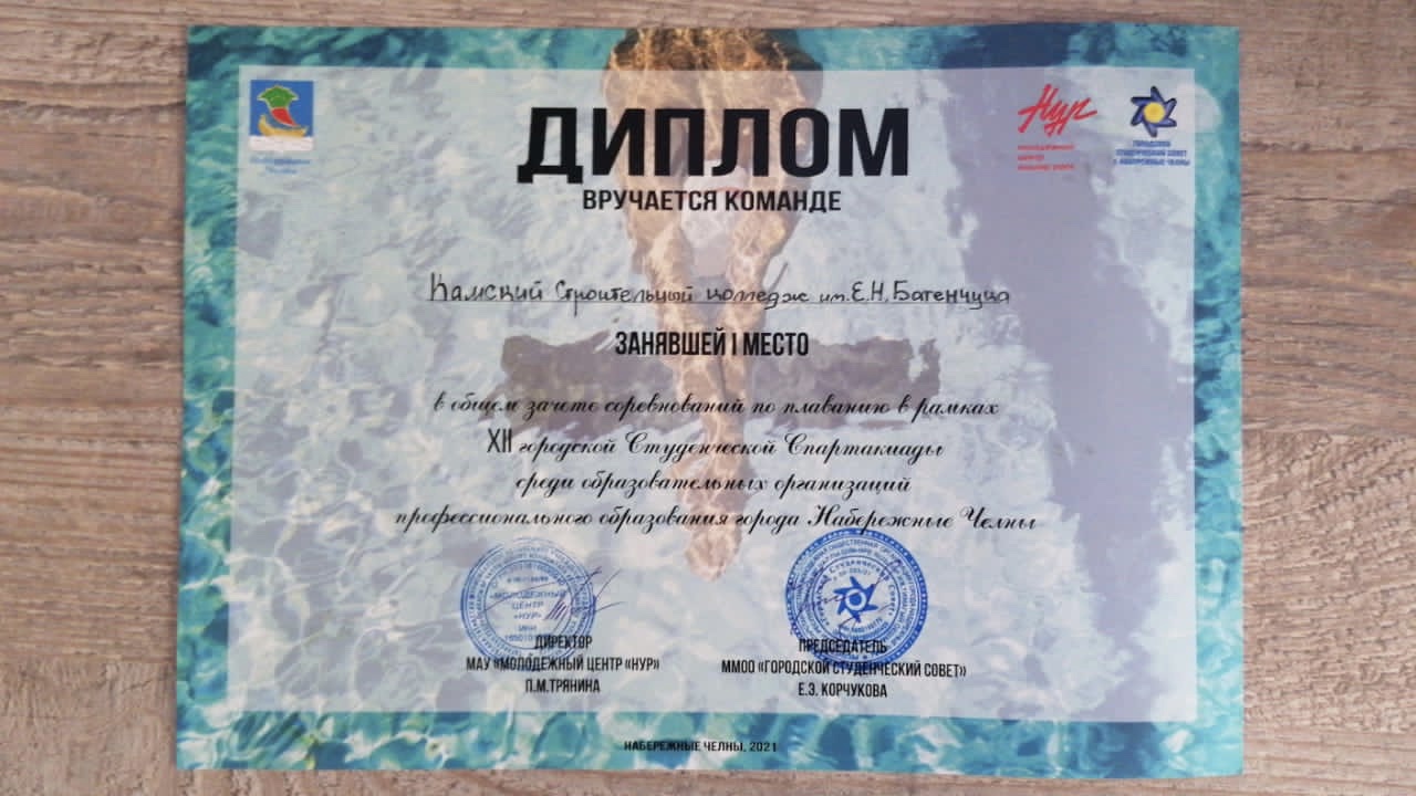Опубликовано: 29.04.2021Студенты ГАПОУ «Камский строительный колледж имени Е.Н. Батенчука», под руководством преподавателей физической культуры Гареевой М.В. и Быковой Л.Ф., заняли первое место среди ССУЗов города в соревнованиях по плаванию в XII Городской Студенческой Спартакиады.