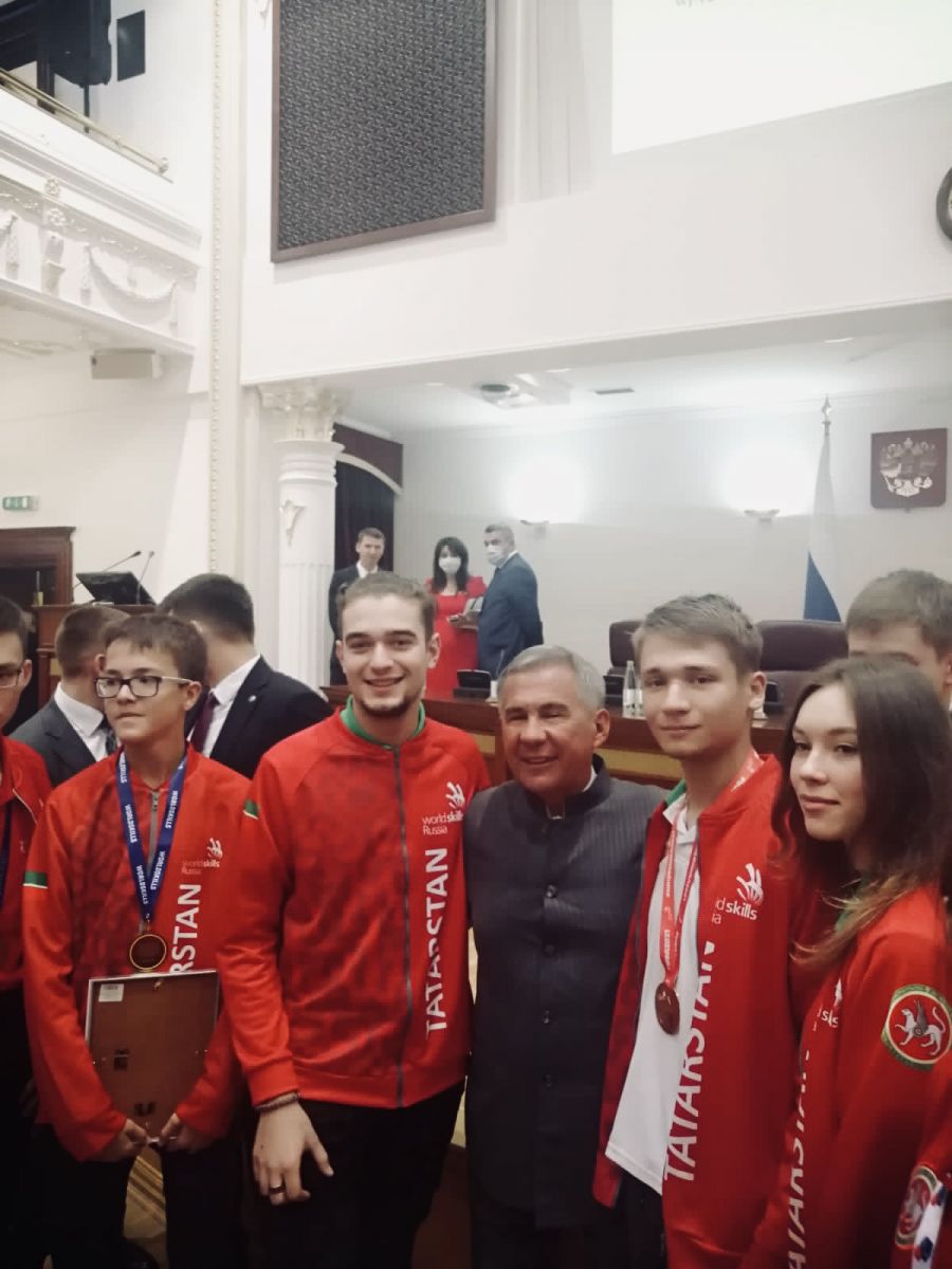????14 сентября 2021 года в представительском корпусе Аппарата Президента Республики Татарстан в Казанском кремле состоялось торжественное чествование победителей и призеров IX Национального чемпионата «Молодые профессионалы» (WorldSkills Russia) с участием Президента Республики Татарстан Рустама Нургалиевича Минниханова.
