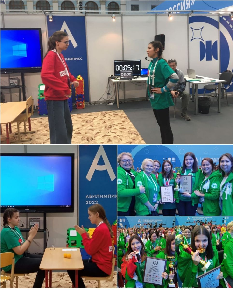 Көллиятебез Абилимпикста 28-31 октябрьләрдә Мәскәү тулы бер яшьлек һәм хезмәт дәрте белән кайнады, анда һөнәри рухтагы тормыш гөрләде. Сәбәбе дә бик җитди: “Россия – мөмкинлекләр иле” президент платформасының инвалидлар һәм физик мөмкинлекләре чикләнгән кешеләр арасында һөнәри осталык буенча «Абилимпикс» илкүләм чемпионаты узу. Анда 152 татарстанлы катнашты, алар арасында безнең көллияттә укучы һәм аны тәмамлаган студентлар көч сынашты: “Башлангыч сыйныф укытучысы” белгечлеге буенча: Мазина Анастасия һәм Фролова Светлана; “Мәктәпкәчә тәрбия” белгечлегендә Хөсәенова Әдилә. Гомумән ярышлар 8 юнәлеш: мәгълүмати технологияләр, хезмәт күрсәтүләр өлкәсе, туклану, медицина, сәнәгать, иҗат, декоратив сәнгать, икътисад һәм финанс өлкәсе юнәлешләрендә 40 һөнәри күнекмә буенча үткәрелде. Финалда өч категория: мәктәп укучылары, студентлар һәм белгечләр катнашты.