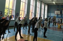 Он состоял из 2 блоков: утренняя гимнастика и веселые старты с заданиями на сообразительность, логику).
