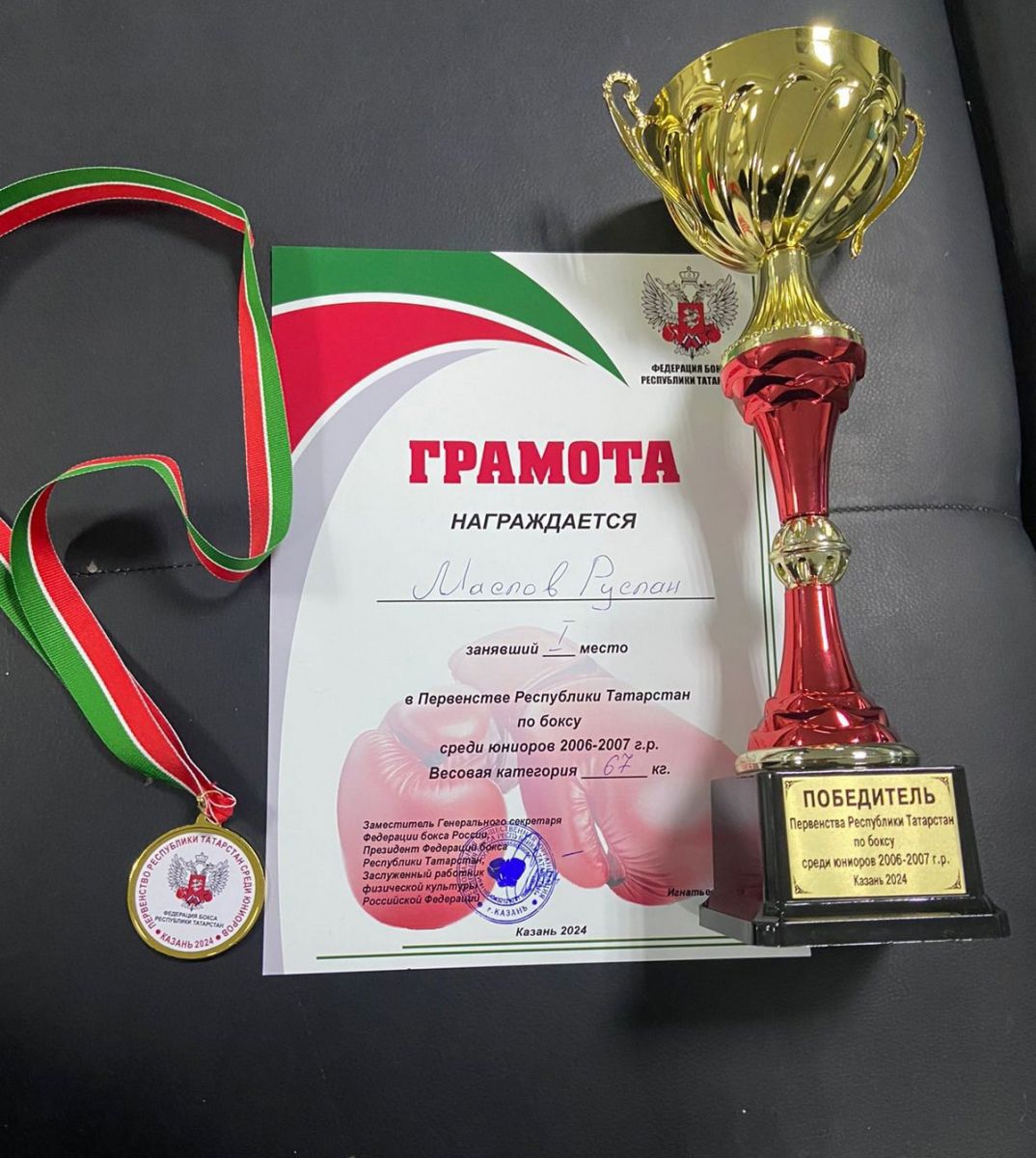Студент нашего колледжа группы П-222 Маслов Руслан стал победителем значимого республиканского спортивного события - первенства Республики Татарстан по боксу, на котором приняли участие более 100 лучших боксеров 2006-2007 г.р. из городов и районов РТ. Руслан одержал 3 победных боя и стал абсолютным чемпионом среди юниоров в весовой категории 67 кг. Хотим пожелать ему дальнейших успехов и достойно представить нашу Республику на Первенстве Приволжского Федерального округа! -