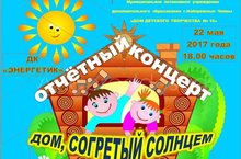 Дом детского творчества № 15 приглашает на праздник творчества и талантов, отчетный концерт творческих коллективов "Дом, согретый Солнцем!", который состоится 22 мая 2017 года в 18.00 час в ДК "Энергетик".