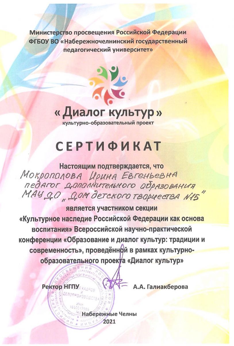 - Мокрополова И_Е_, участник, сертификат Диалог культур.jpg