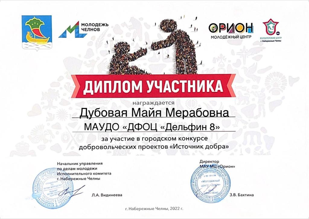 Дубовая М.М. - участница Муниципального конкурса добровольческих проектов "Источник добра" (ноябрь, 2022 г.)