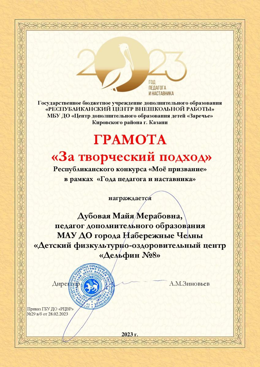Дубовая М.М., Миниханова С.А., Таушев С.С. - творческий подход, Щипицын С.В. - 1 место в Республиканском конкурсе "Мое призвание" в рамках "Года педагога наставника" (28.02.2023 г.)