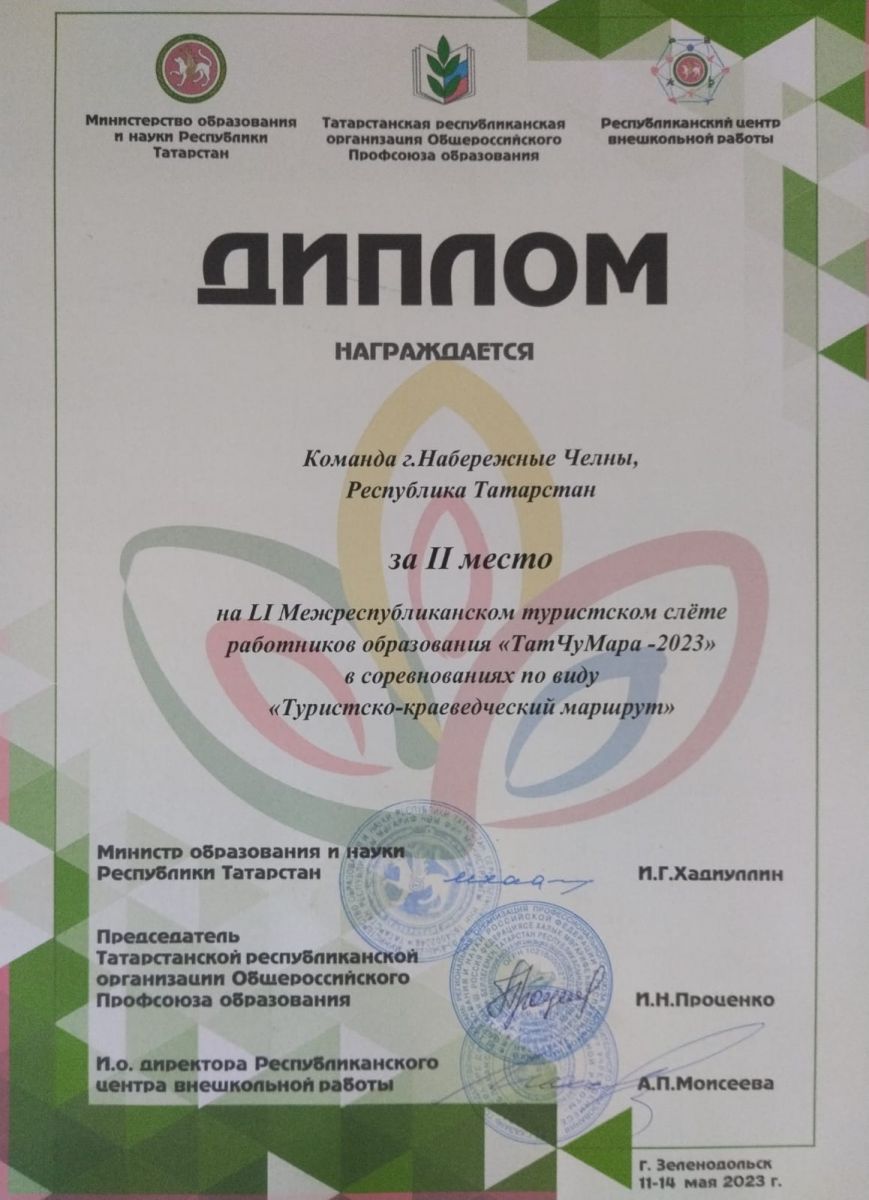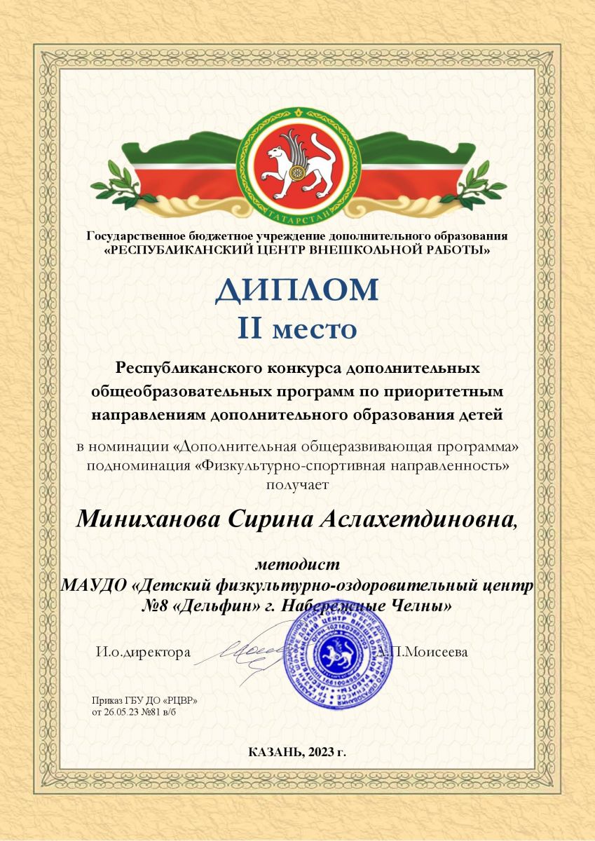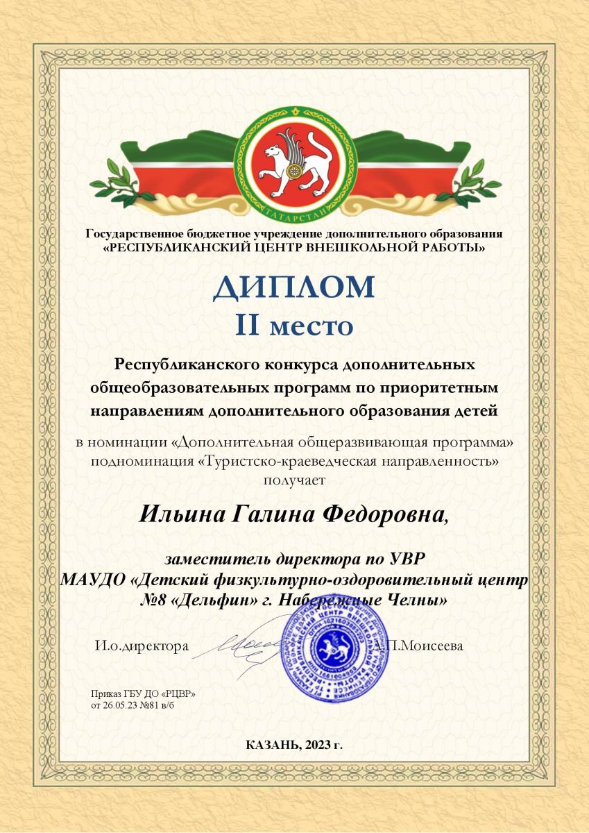 Ильина Г.Ф. - 2 место, Миниханова С.А. - 2 место, Таушев С.С. - 2 место, Щипицын С.В. - 2 место в "Республиканском конкурсе дополнительных общеобразовательных общеразвивающих программ по приоритетным направлениям дополнительного образования детей" (26.05.2023 г.)