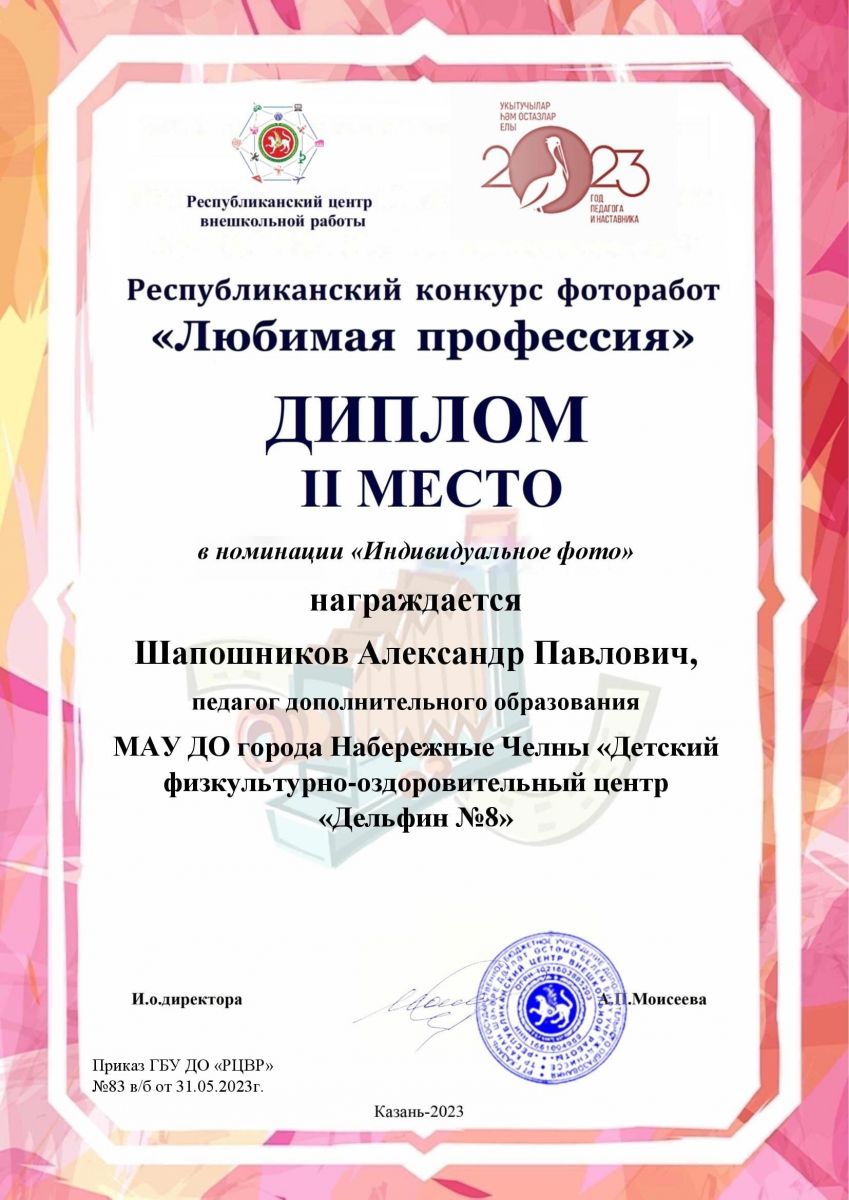 Дубовая М.М. - 1 место, Шапошников А.П. - 2 место, Шапошников А.П. - 2 место в Республиканском конкурсе фоторабот "Любимая профессия" в рамках Года Педагога и Наставника (31.05.2023 г.)
