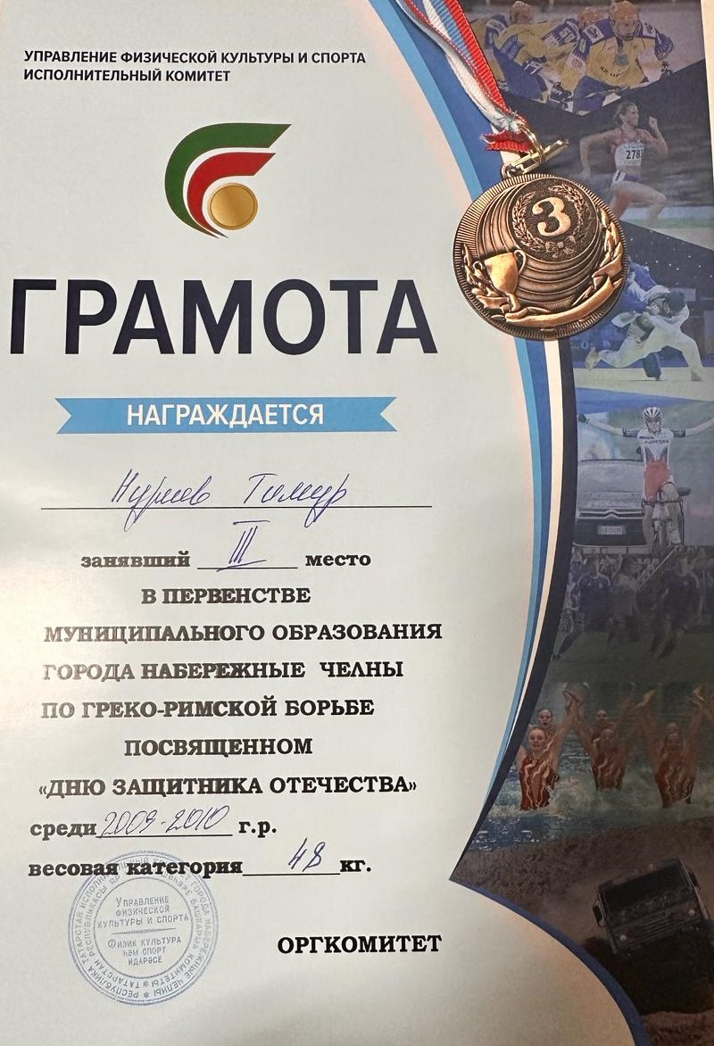 - Амиров Радмир 2 место, Нуриев Тимур 3 место в Первенстве города Набережные Челны по греко-римской борьбе, посвященном Дню защитника Отечества (24.02.2024)