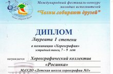 10 февраля 2019 года в г. Нижнекамск прошел II Международный вокально-хореографический фестиваль-конкурс детского и юношеского творчества «Жемчужины Татарстана». Учащиеся ансамбля танца "Соцветие" и хореографического коллектива "Росинка", под руководством Гайдук Н.В. и Суючевой А.Г. стали Лауреатами конкурса обладателями 10 кубков. Поздравляем с победой и желаем им творческих успехов и дальнейшего роста.