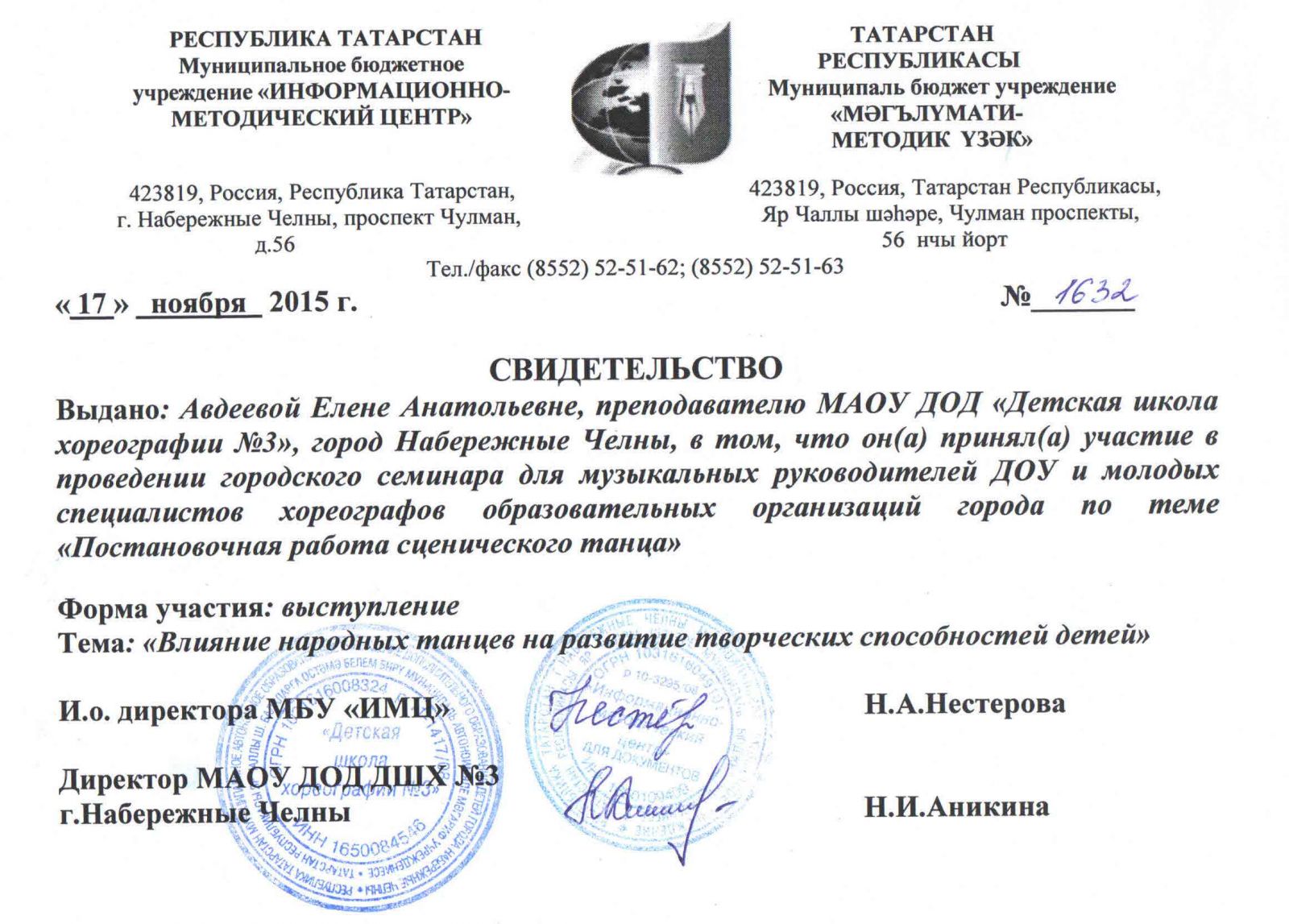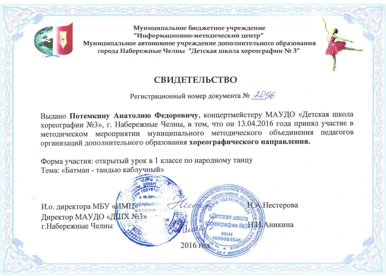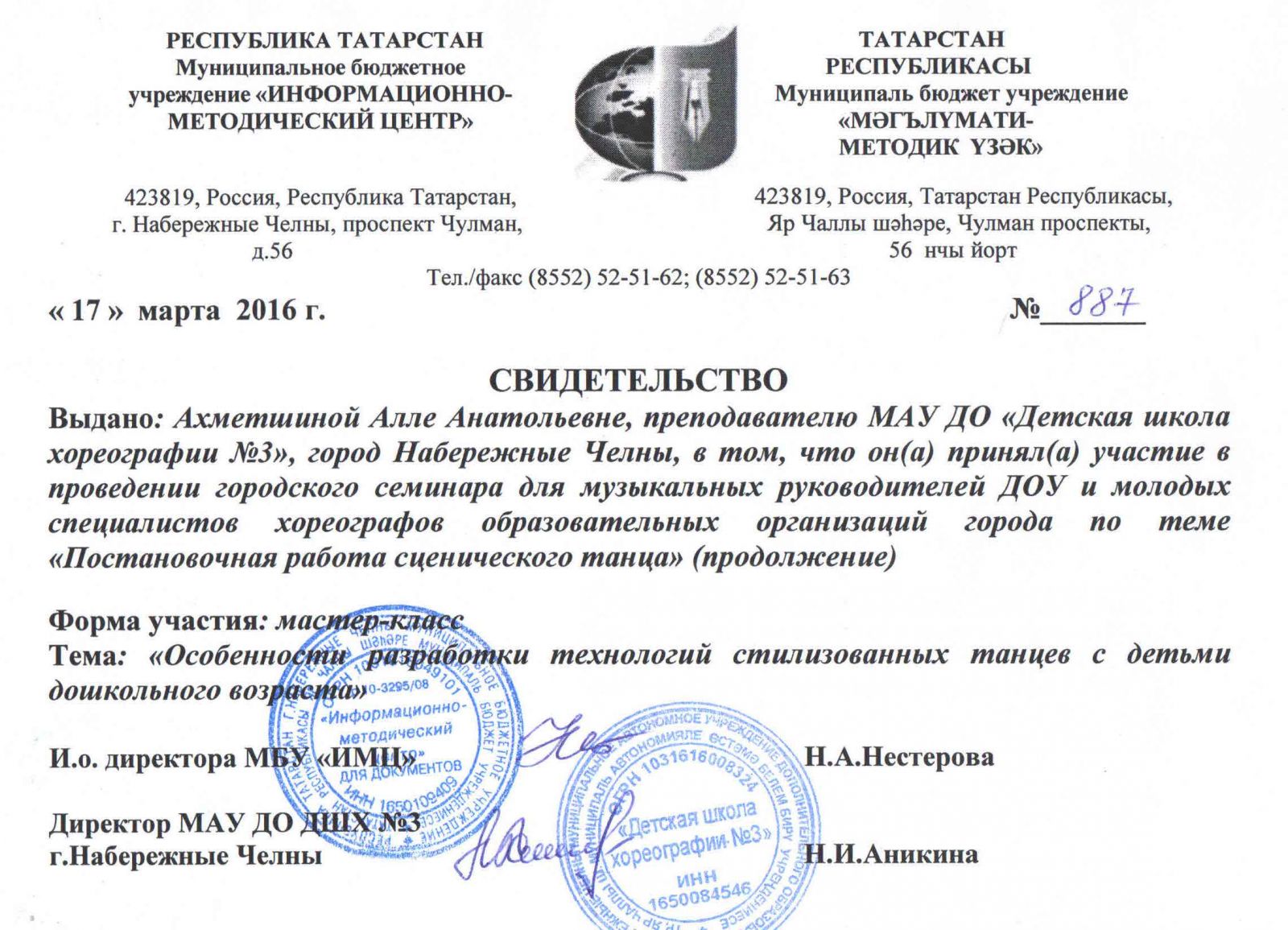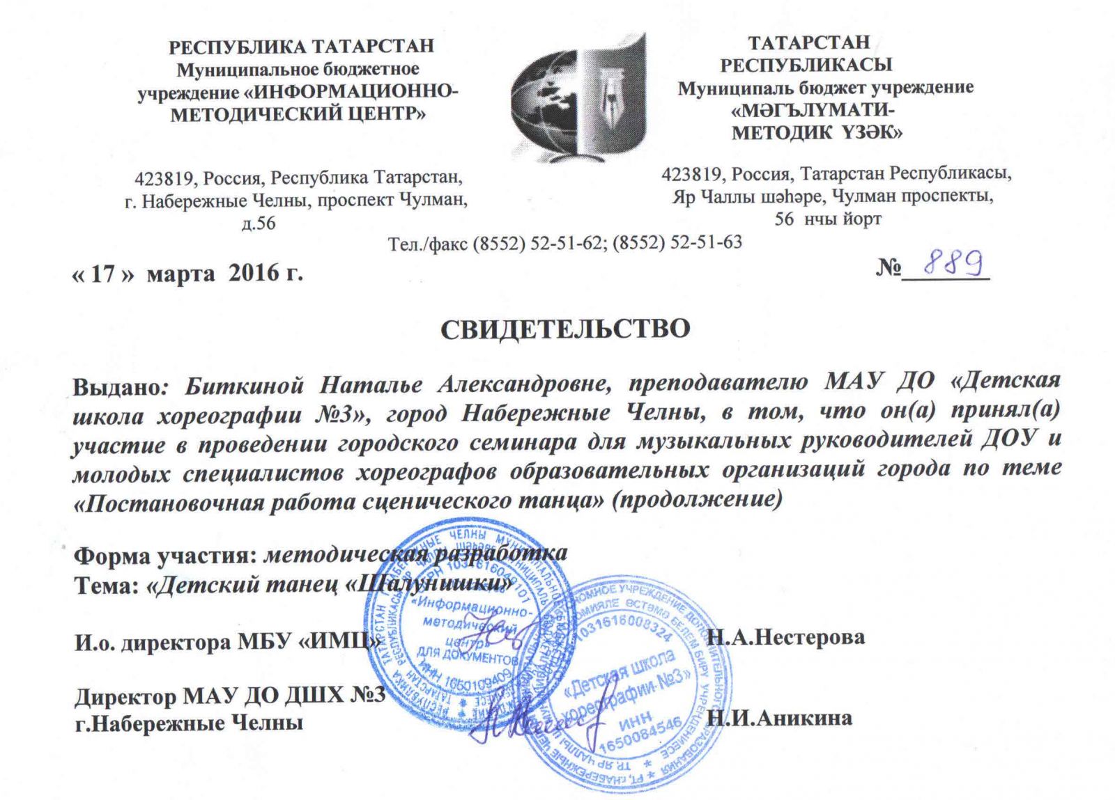 Муниципальное автономное учреждение дополнительного образования города Набережные Челны "Детская школа хореографии №3" / Яр Чаллы шәһәренең "3 нче балалар хореография мәктәбе" муниципаль автономияле өстәмә белем бирү учреждениесе