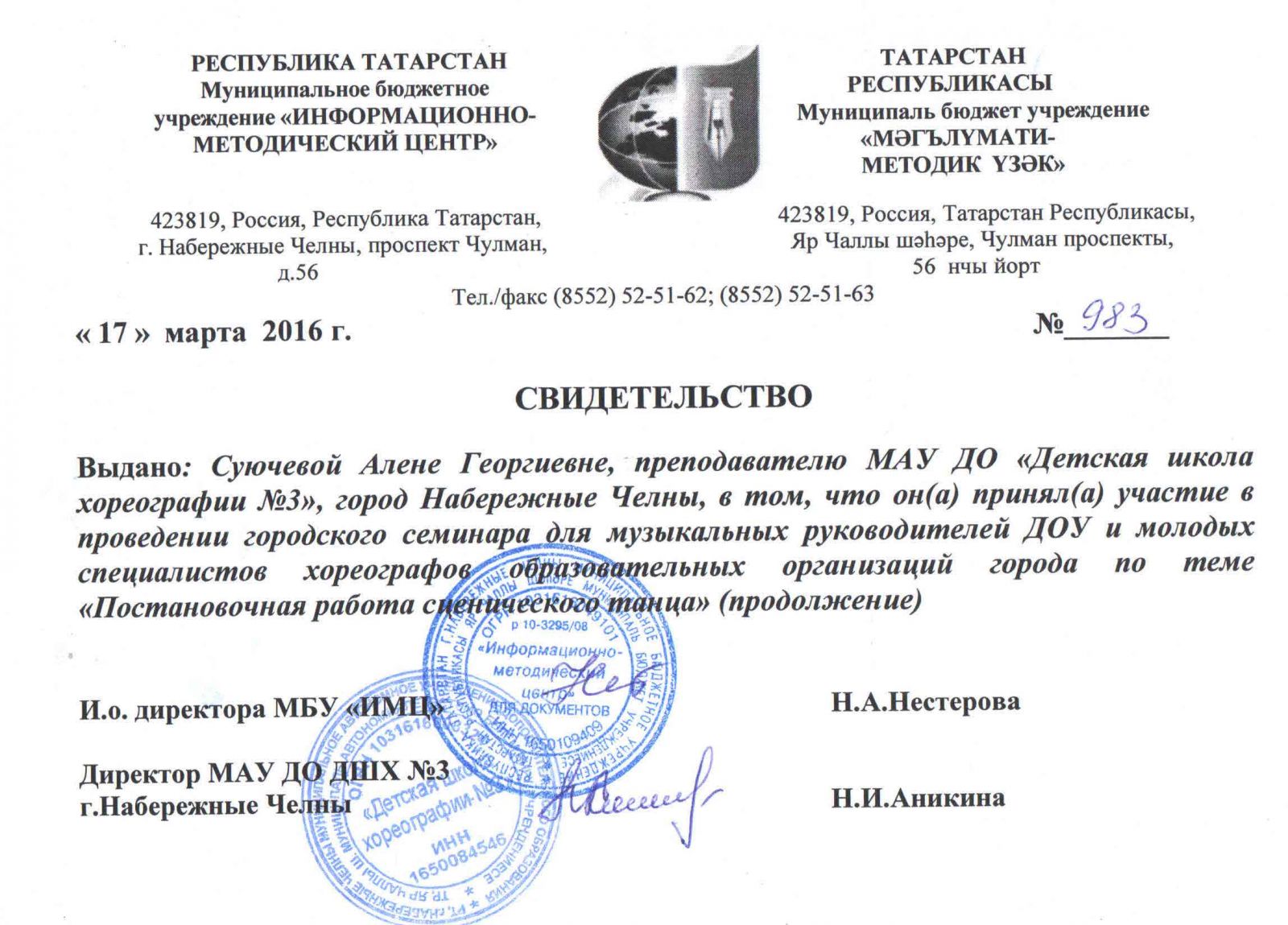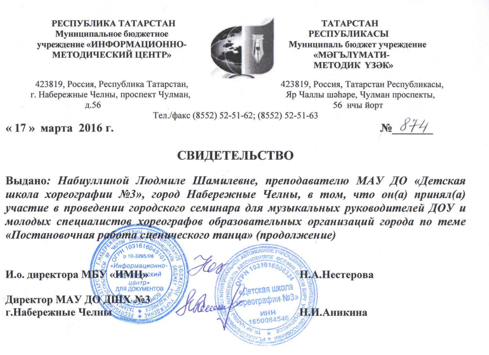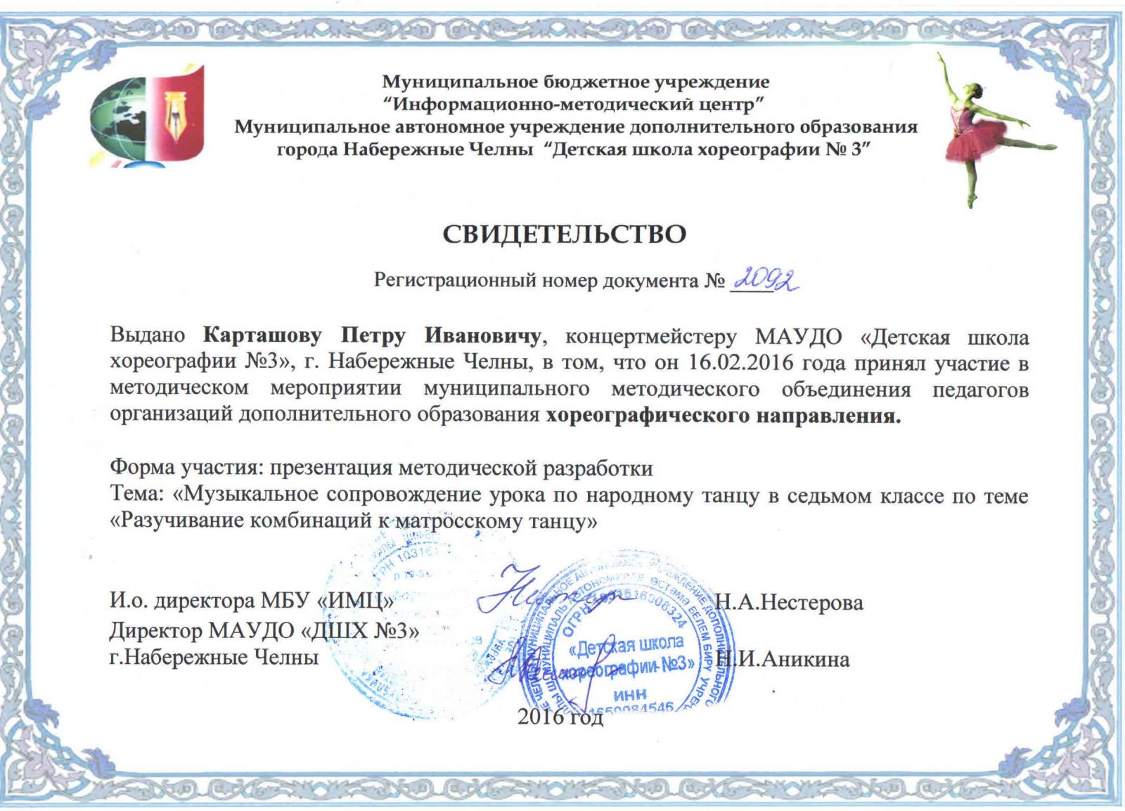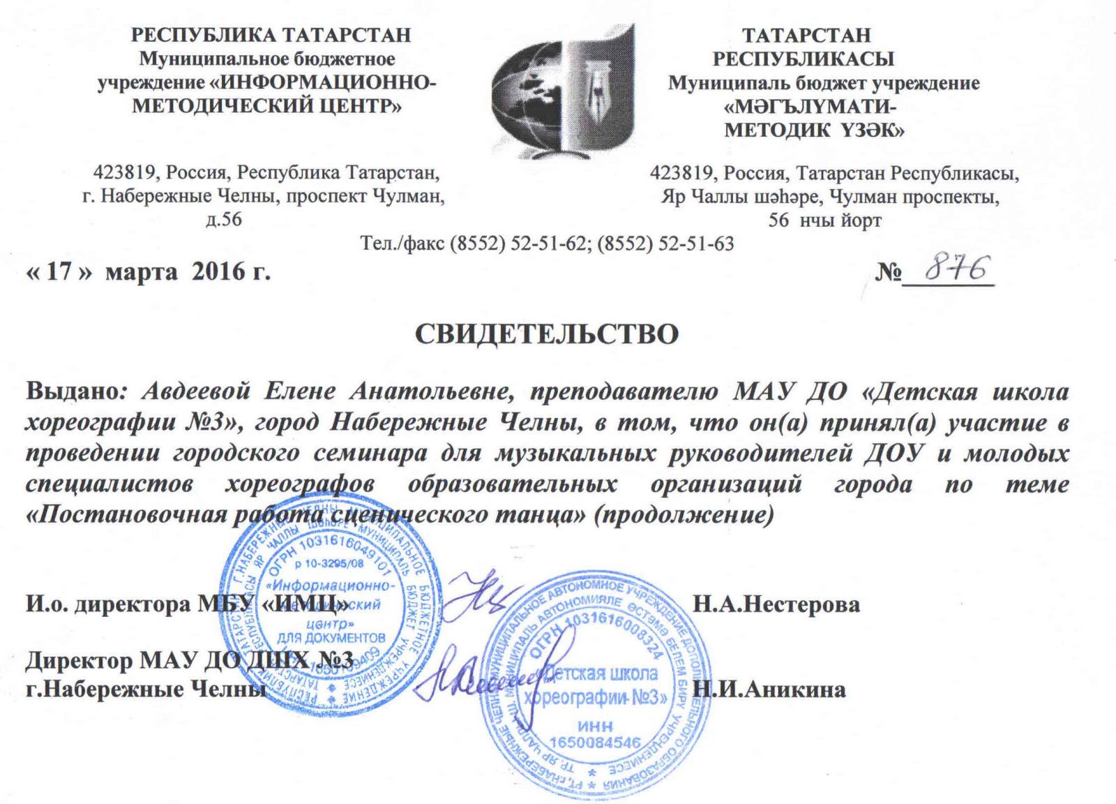 Муниципальное автономное учреждение дополнительного образования города Набережные Челны "Детская школа хореографии №3" / Яр Чаллы шәһәренең "3 нче балалар хореография мәктәбе" муниципаль автономияле өстәмә белем бирү учреждениесе