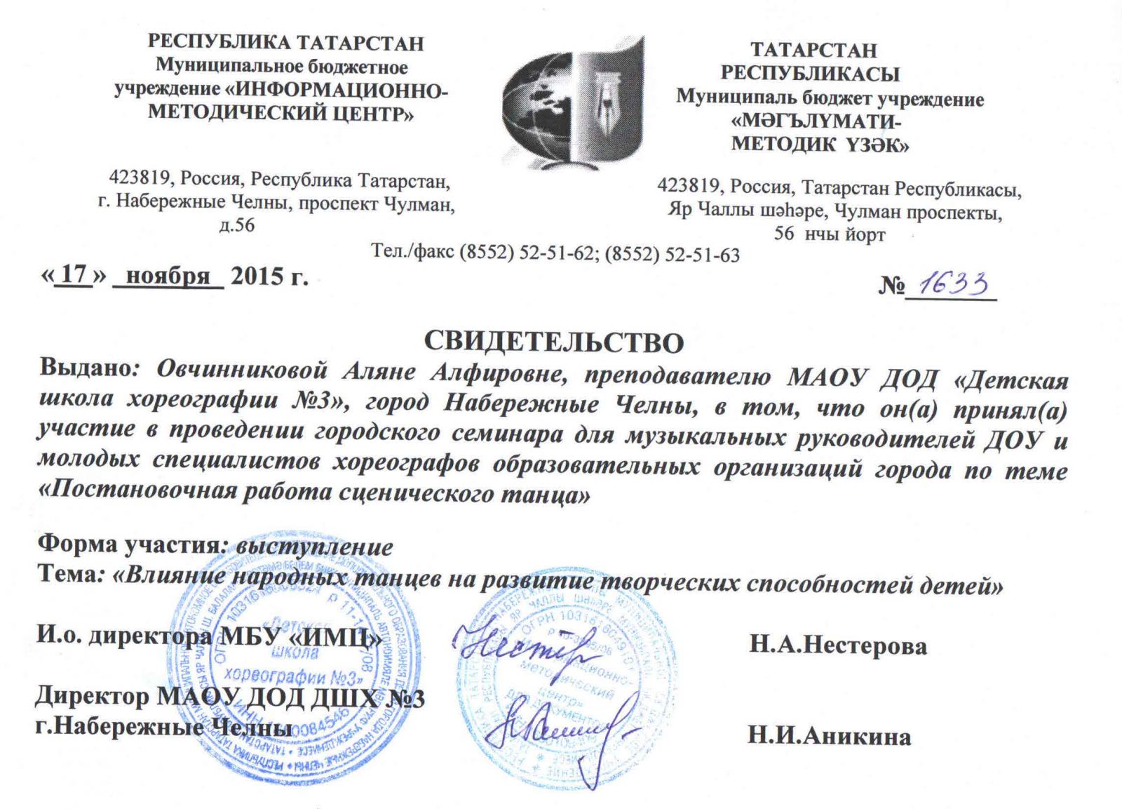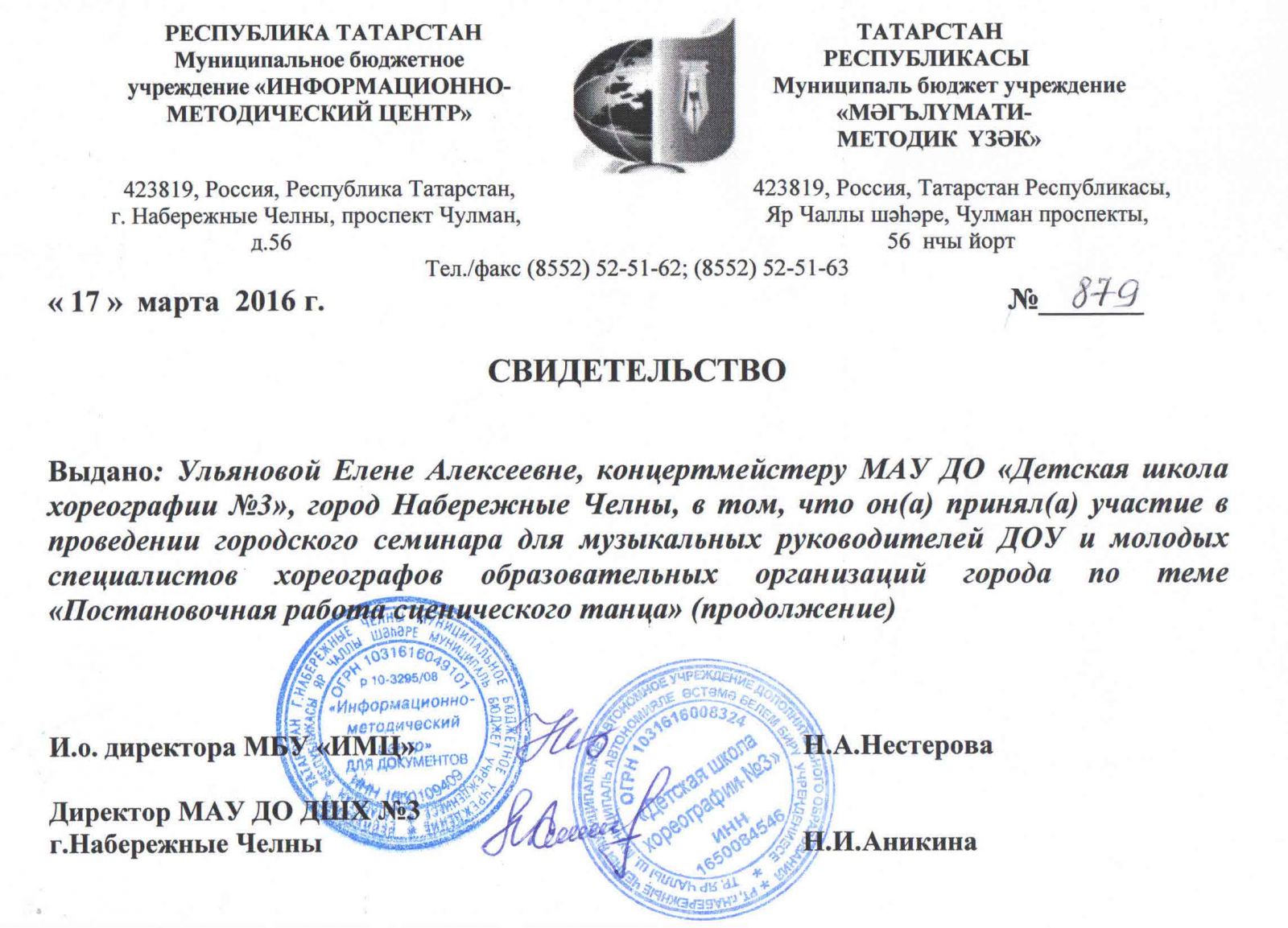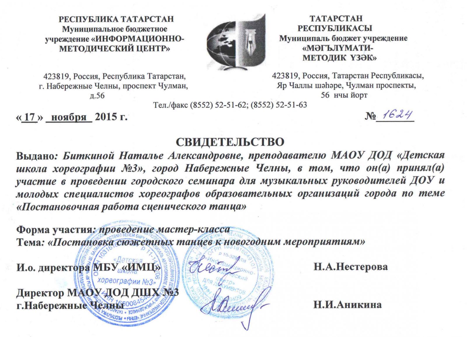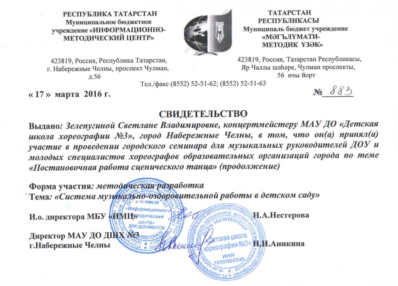 Муниципальное автономное учреждение дополнительного образования города Набережные Челны "Детская школа хореографии №3" / Яр Чаллы шәһәренең "3 нче балалар хореография мәктәбе" муниципаль автономияле өстәмә белем бирү учреждениесе